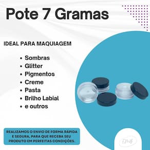 Pote 7 gramas, sendo o tamanho perfeito para armazenar uma variedade de produtos, como cosméticos, cremes, amostras, suplementos, especiarias e muito mais.