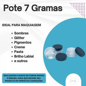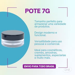 Pote 7 gramas, sendo o tamanho perfeito para armazenar uma variedade de produtos, como cosméticos, cremes, amostras, suplementos, especiarias e muito mais.