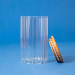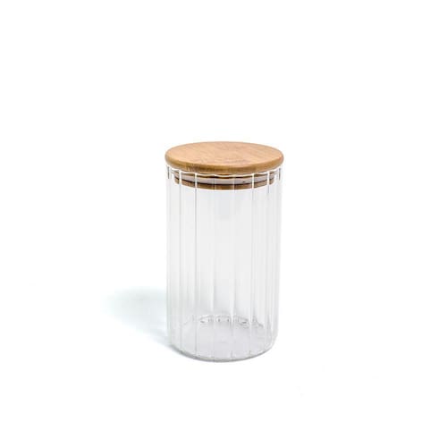 Pote 800ml de vidro canelado com tampa de bambu de mantimento - Oikos