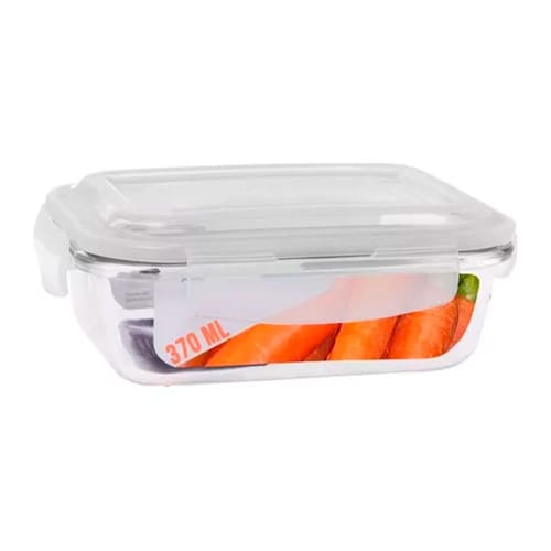 Pote para alimentos hermético marmita de vidro fit 370ml com borracha de vedação e trava na tampa