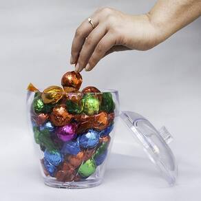 O Pote Multiuso Boccati demonstra sua versatilidade como produto! Além de sua função como balde para gelo, pode ser utilizado como recipiente para bombons ou como organizador para diversos objetos.