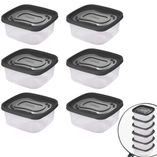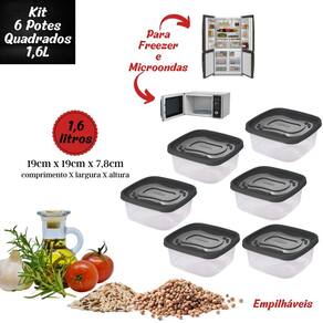 Conjunto com 6 potes de plástico quadrados com tampa, sendo cada um com capacidade para 1,6 litros. São produzidos em polipropileno de alta resistência e durabilidade e material atóxico livre de bisfenol (BPA Free). Podem ser levados ao freezer e micro-ondas.