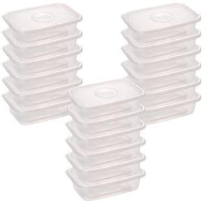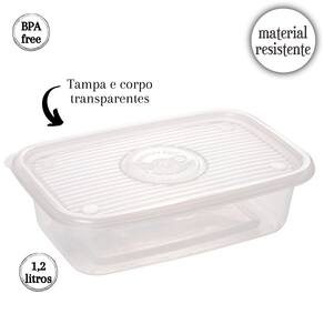 Conjunto com 18 unidades. Recipiente plástico com capacidade para 1,2 litros. Possui tampa translúcida para facilitar a identificação do conteúdo. É produzido em material atóxico e livre de BPA. Pode ser levado ao freezer e ao micro-ondas. Material: polipropileno Capacidade: 1,2 litros Comprimento: 23,6 cm / Largura: 15,7 cm / Altura: 6,7 cm