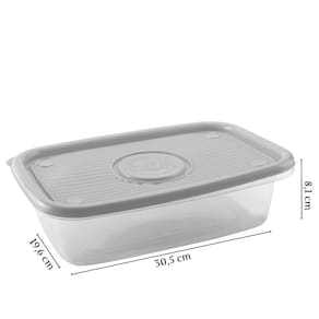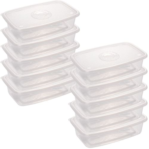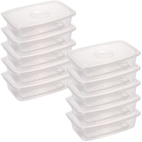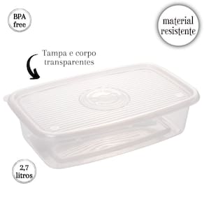 Conjunto com 10 unidades. Recipiente plástico com capacidade para 2,7 litros. Possui tampa translúcida para facilitar a identificação do conteúdo. É produzido em material atóxico e livre de BPA. Pode ser levado ao freezer e ao micro-ondas. Material: polipropileno Capacidade: 2,7 litros Comprimento: 30,5 cm / Largura: 19,6 cm / Altura: 8,1 cm