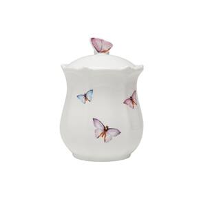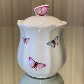 Pote de Porcelana Branca C/Tampa Borboletas 660ml Wolff