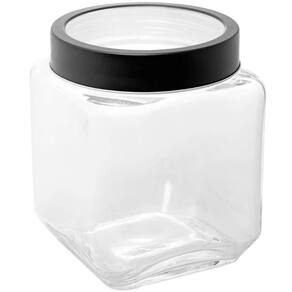 Pote de Vidro 1,2L para Mantimentos Tampa Metal Preta Gastro Lyor Quadrado.