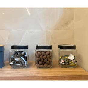O pote de vidro 1,2L para mantimentos Gastro Lyor é uma adição elegante e prática para sua cozinha. Com um design quadrado e capacidade de 1,2 litros, oferece amplo espaço para armazenar uma variedade de alimentos, como grãos, massas, doces ou até mesmo itens de decoração. A tampa em metal e acrílico preto não só proporciona um toque sofisticado, mas também mantém os alimentos frescos por mais tempo, protegendo contra a umidade e outros elementos externos. Seu formato quadrado facilita o empilhamento e a organização em prateleiras ou armários, otimizando o espaço disponível. Além disso, sua estética moderna adiciona um toque de estilo à sua cozinha. Com o pote de vidro Gastro Lyor, você terá uma solução elegante e funcional para armazenar seus mantimentos com facilidade e sofisticação.