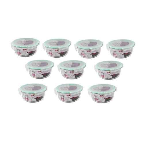 10 Potes Herméticos Redondo De Vidro 620ml com Tampa CA12653 CasitaCARACTERÍSTICAS:- Os potes da linha Casita são versáteis para a cozinha, servindo para organizar mantimentos e guardar alimentos. O pote hermético redondo, com capacidade para 620 ml, é ideal para conservar sobras de refeições na geladeira.- Fabricado em vidro borosilicato, um material termo-resistente e robusto, que evita manchas e odores, além de facilitar a limpeza. O material não contém BPA. O recipiente pode ser utilizado em forno, freezer, geladeira, micro-ondas e lava-louças, resistindo a choques térmicos e a temperaturas de até 400°C. A tampa hermética veda completamente o recipiente e mantém os alimentos frescos por mais tempo.- O sistema de travas nos quatro lados oferece segurança e previne vazamentos.LIMPEZA:- Lavar com detergente neutro, esponja macia e secar imediatamente. Não é recomendado lavar em máquinas, nem utilizar produtos químicos.ESPECIFICAÇÕES:- Marca: Casita- Referência: CA12653- Capacidade: 620 ml- Material: Vidro Borosilicato- Cor: Transparente- Dimensões: Ø 15 x 15 x 6,7 cm- Peso: 575 gCONTEÚDO DA EMBALAGEM:10 Potes Herméticos Redondo De Vidro 620 ml
