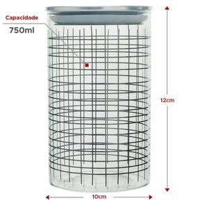 - Tampa em Aço Inox com Vedação de Silicone - Pote Produzido com Vidro Borossilicato Resistente - Capacidade: 750ml - Medidas: 12,5cm x 10cm Altura x Largura Ean: 7899766710581