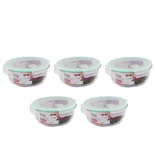5 Potes Herméticos Redondo De Vidro 950ml com Tampa CA12654 CasitaCARACTERÍSTICAS:- Os potes da linha Casita são versáteis para a cozinha, servindo para organizar mantimentos e guardar alimentos. O pote hermético redondo, com capacidade para 950 ml, é ideal para conservar sobras de refeições na geladeira.- Fabricado em vidro borosilicato, um material termo-resistente e robusto, que evita manchas e odores, além de facilitar a limpeza. O material não contém BPA. O recipiente pode ser utilizado em forno, freezer, geladeira, micro-ondas e lava-louças, resistindo a choques térmicos e a temperaturas de até 400°C. A tampa hermética veda completamente o recipiente e mantém os alimentos frescos por mais tempo.- O sistema de travas nos quatro lados oferece segurança e previne vazamentos.LIMPEZA:- Lavar com detergente neutro, esponja macia e secar imediatamente. Não é recomendado lavar em máquinas, nem utilizar produtos químicos.ESPECIFICAÇÕES:- Marca: Casita- Referência: CA12654- Capacidade: 950 ml- Material: Vidro Borosilicato- Cor: Transparente- Dimensões: Ø 17,7 x 17,7 x 7,2 cm- Peso: 575 gCONTEÚDO DA EMBALAGEM:5 Potes Hermético Redondo De Vidro 950 ml