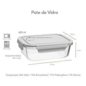 O pote de vidro com tampa hermetica. O porta mantimentos foi produzido com um tipo de vidro resistente ao calor e ao choque termico. Tem uma tampa com alta vedaçao que se encaixa perfeitamente no topo do pote, mantendo o conteudo fresco por mais tempo. O design do pote é simples e perfeito para armazenar alimentos, como graos, massas, cereais, cafe, açucar, cha, entre outros. Sua resistencia ao calor e ao choque termico o torna uma opçao duravel e confiavel para o uso diario.