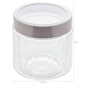 Garantia: 90 dias / Peso: 0,474kg / Cor predominante: inox / Ref: 7899768071178; Dimensões: 11,5cm (D) x 12cm (A); Dimensões da tampa: 11cm (D) x 2,5cm (A); Dimensões área de uso: 11,5cm (D) x 11cm (A); Capacidade: 870ml; Materiais: vidro borossilicato, aço inox e acrílico; Conteúdo: 1 porta mantimentos de vidro Lyor.