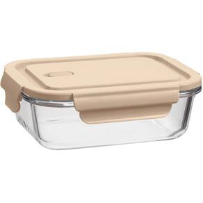 Pote de Vidro Borossilicato 680ml Porta Mantimentos Hermético Retangular Tampa Capuccino UZ.