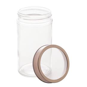 Design Elegante e Moderno: Com sua tampa de acrílico rosé e corpo de vidro transparente, este pote combina estilo e praticidade.