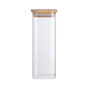 Pote de Vidro com Tampa de Bambu Oikos 400ML Hermético Quadrado