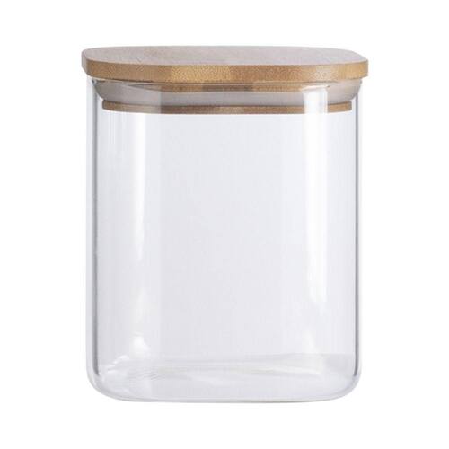 Pote de Vidro com Tampa de Bambu Oikos 800ML Hermético Quadrado