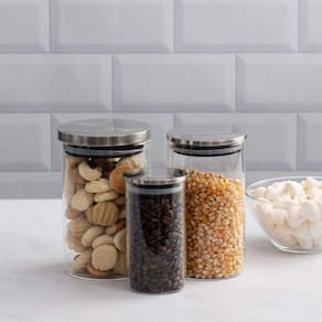 Pote De Vidro Com Tampa Em Inox Redondo 650ml Kenya Possui formato cilíndrico que facilita o empilhamento, mantendo despensas bancadas ou armários sempre organizados. Não s ó para a cozinha estes potes também armazenam algodão, fios e carregadores, peças de jogos, pisca piscas material de artesanato, flores secas, cápsulas de café, nozes, material de escritório, e o que mais você quiser guardar.Ficha técnica:- Código: 4083080025- Marca: Kenya- Conteúdo da Embalagem: 1 Pote-Especificações do produto:Resistente e durável e com excelente vedaçãoVidro de BorosilicatoFechamento com anel de vedaçãoDesign simplificado que serve para armazenar desde produtos de cozinha à lavanderia- Material: Vidro de borosilicato- Capacidade: 650ml- Peso: 0,15kg- Dimensões: 15cm x 8,5cm x 8,5cm (AxLxP)- Garantia: 90 Dias