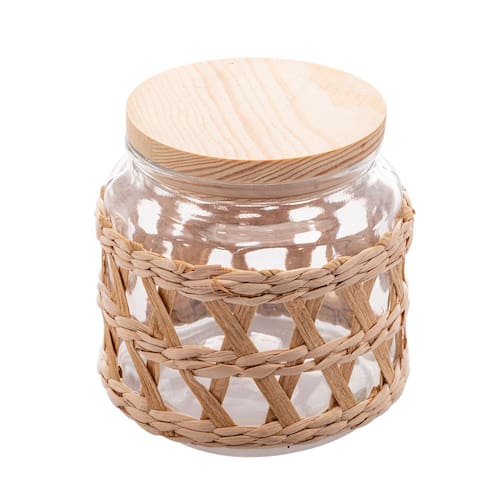 Este pote de vidro decorado com sisal proporcionará a praticidade e beleza ao armazenar seus mantimentos e decorar sua cozinha. Cheio de charme e fabricado em vidro e tampa de madeira, esta charmosa peça conta com muita funcionalidade e qualidade, possui decoração em volta de toda a peça com sisal.