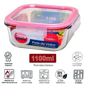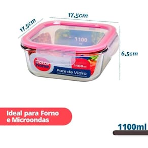 Pote de vidro perfeito para armazenar os alimentos, além de poder ser Utilizado no micro-ondas. Possui friso em silicone com abas na tampa, promovendo um fechamento hermético ideal para uma melhor conservação dos alimentos. Elegância, praticidade e beleza para sua cozinha. Ficha técnica: Material: Pote: Vidro Boro silicato Tampa: PP e Silicone Resistente Durável Capacidade: 1100ml Dimensões: 17,5cm X 6,5cm Conteúdo da embalagem: 1 Pote De Vidro Hermético 1100ml Produtos de decoração não inclusos. Imagem meramente ilustrativa.