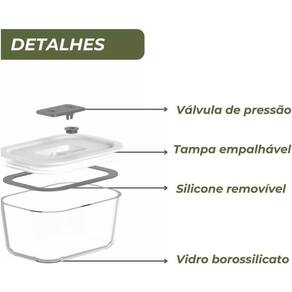Cozinhe no forno ou air fryer até 220°C Leve ao freezer até -20°C para congelar alimentos Aqueça sua comida no micro-ondas com a válvula aberta Pode ser levado à lava-louças para facilitar a limpeza O vidro borossilicato evita manchas e odores Fabricado em material livre de BPA