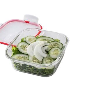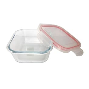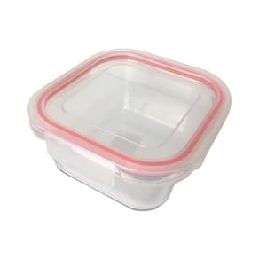 Características: -capacidade: 500ml. -material: Vidro borossilicato e plástico. -com tampa e 4 travas. -hermético. -resistente a choque térmico. -suporta temperatura de até 400ºC. -comprimento: 11cm. -largura:11cm. -altura: 6cm. -não retém cheiros. -fácil de limpar e guardar.