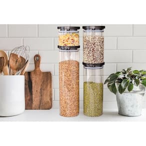 Chega de bagunça dentro dos armários! Os Potes de Vidro Organizadores chegaram para te ajudar na organização dos alimentos, levando mais praticidade para a sua cozinha. Versátil, combina funcionalidade com um design moderno. Feito de vidro transparente e resistente, permite visualizar o conteúdo com facilidade. Empilhável, possui 4 tipos de litragens e tamanhos diferentes: 500ml, 1L, 1,5L, 2L. Produzido em vidro borosilicato, com tampa em polipropileno e acabamento em silicone, ele é livre de BPA e pode ser colocado no freezer e na lava-louças. Os alimentos ficam protegidos e conservados em seu interior, já que possui borracha para vedação. Excelente opção para quem gosta categorizar grãos e sementes com estilo!