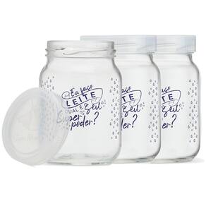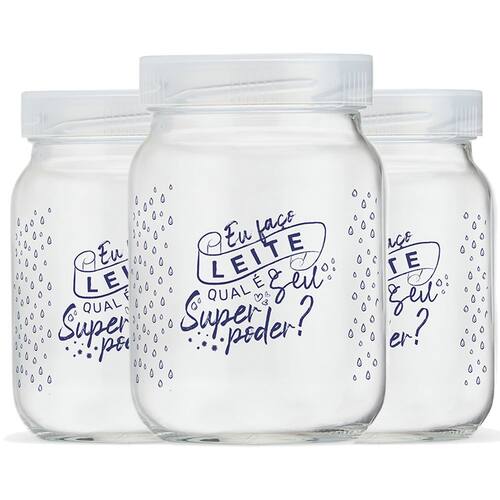 Pote de Vidro para Leite Materno 200ml Com Tampa Plástica 3 Unidades Decorado Super Poder!