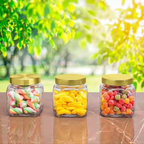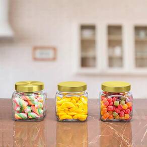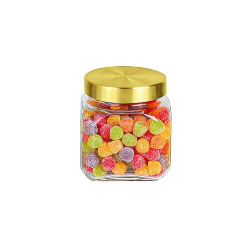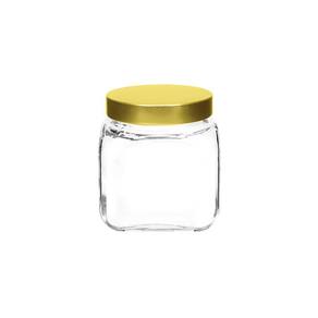 Pote de Vidro Quadrado com Tampa Dourada 700mL - Casambiente