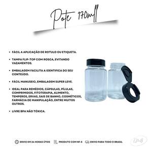 Frasco Plástico Pet Pote Cápsulas 170Ml com Tampa Flip Top - Ideal para armazenar remédios, cápsulas, pílulas, comprimidos, fitoterapia, alimentos, temperos, ervas, sais de banho, cosméticos e muito mais. Com tampa flip top para fechamento hermético e proteção contra umidade e ar. Fabricado com materiais de alta qualidade, livre de BPA. Dimensões perfeitas para caber na bolsa, mochila ou nécessaire. Produto não tóxico e ecologicamente correto. Garanta já a sua solução prática e segura para o armazenamento de cápsulas e comprimidos. Marca: Embanet Comercio De Embalagens Ean: 7791760641611