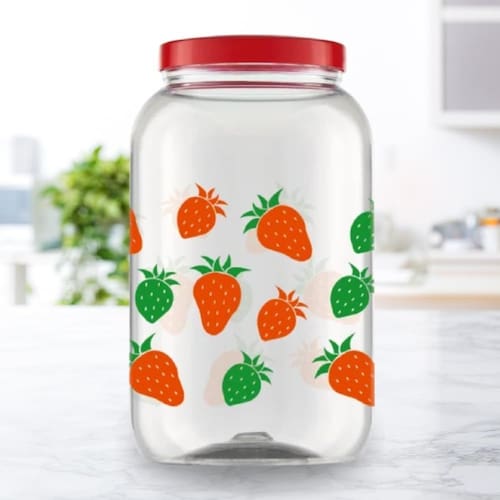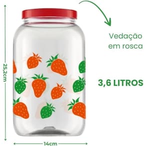 Pote Grande 3,6 Litros Com Tampa de Rosca - Estampa MORANGO - Porta Mantimento Alimento Decorado Organizador - PANAMI