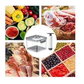 Principais Benefícios: • Conservação prolongada com vedação a vácuo • Bomba manual inclusa para rápida remoção do ar • Material resistente e livre de BPA • Corpo transparente para fácil visualização • Tampa com trava lateral à prova de vazamentos • Formato retangular e empilhável, ideal para otimizar espaço