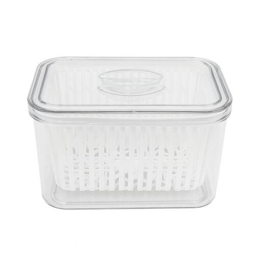 O escorredor interno permite drenar o excesso de água após a lavagem, ajudando a manter os alimentos secos por mais tempo e preservando o sabor e a qualidade por mais dias.