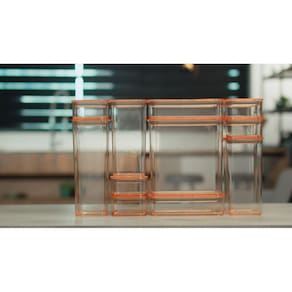 Seu sistema de encaixe não apenas otimiza espaço, mas também proporciona versatilidade, com inúmeras opções de empilhamento, seja de potes maiores sobre os menores ou retangulares acima dos quadrados e vice-versa.
