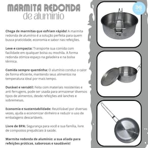 Material de Alta Qualidade: Fabricada em alumínio fundido de alta qualidade, esta marmita oferece resistência excepcional, garantindo que suas refeições sejam transportadas com segurança e mantidas frescas por mais tempo.