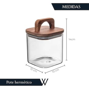 O Pote Hermético de Borossilicato com Tampa em Acácia da Wolff é um complemento elegante e funcional para a sua cozinha, oferecendo praticidade e estilo ao armazenamento de alimentos.