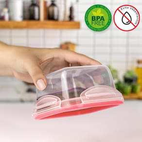 Feito em plástico transparente atóxico e livre de BPA, o pote é seguro para uso no micro-ondas, freezer e lava-louças, o que facilita o seu dia a dia.