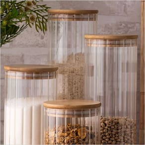 Pote Hermético de Vidro Borossilicato Canelado com Tampa de Bambu 1,5L - Dynasty