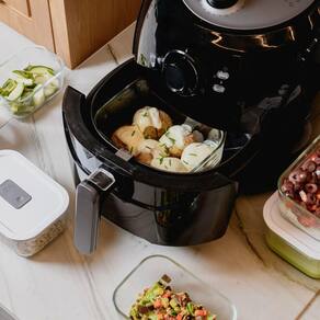 O pote de vidro hermético de 370ml acompanha você em todas as etapas no preparo das refeições, suportando temperaturas de até 220°C no forno ou air fryer e -20°C no freezer.