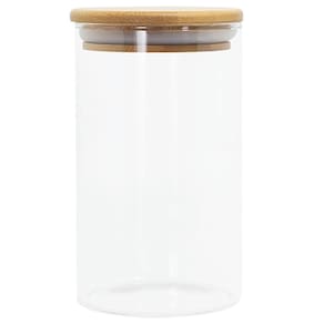 Pote Hermético De Vidro Flat 600Ml Com Tampa De Bambu
