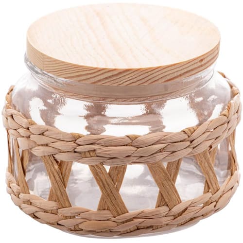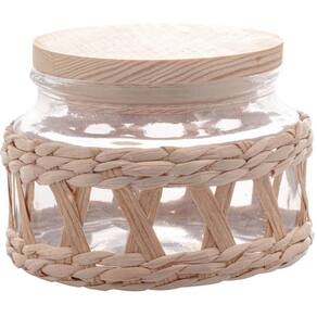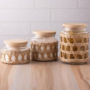 Pote Hermético de Vidro com Tampa de Madeira e Sisal 350ml Redondo para Mantimentos Wolff.
