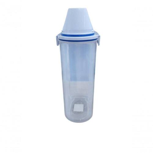 Seu design inteligente conta com tampa hermética e vedação em borracha azul, que protege o conteúdo da umidade, poeira e até pragas como insetos e roedores. Além disso, o recipiente é transparente, o que permite visualizar o conteúdo facilmente e controlar o nível de abastecimento sem precisar abrir. O copo medidor integrado, com marcações claras (1 - 3/4 - 1/2 - 1/4 - 50ml - 100ml - 150ml - 180ml), é rosqueável sobre o bico de despejo, facilitando o controle de porções e evitando desperdícios. A alça ergonômica garante mais conforto ao manusear e transportar.