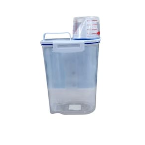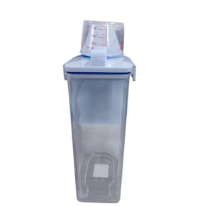 Capacidade: 2kg - ideal para grãos, farinhas, condimentos, cereais e até líquidos como água ou sucos. Material: plástico PP de alta qualidade, livre de substâncias tóxicas, resistente a altas temperaturas e durável. Tampa hermética com vedação em borracha azul para proteger da umidade, poeira e até pragas. Transparente: visualização rápida do conteúdo e controle de abastecimento sem abrir. Copo medidor integrado com marcações claras 1 - 3/4 - 1/2 - 1/4 - 50ml - 100ml - 150ml - 180ml , rosqueável sobre o bico de despejo. Alça ergonômica que facilita o manuseio e transporte. Dimensões: Alt. 29 cm Larg. 8,5 cm Comp. 15 cm Cor: Transparente, Branca e Azul; Peso: aproximadamente 226 g
