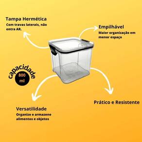 Esse Pote Hermetico Organizador de 800ML é ideal para você organizar e guardar seus mantimentos de cozinha ou de qualquer outro ambiente, sem exposição a insetos ou sujeiras. feito de Pet/Livre de BPA é resistente a impactos. Possui tampa propria para empilhar. Preservam os itens por muito mais tempo por possuir dois fechos externos e um anel de vedação de silicone interna. O pote têm o corpo transpaente, deixando tudo à vista e fácil de localizar, alem de ser fácil de lavar e não pegar cheiro
