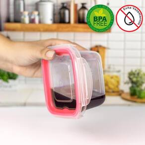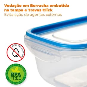 O design conta com borracha embutida na tampa, que garante uma vedação perfeita, evitando vazamentos, mantendo seus alimentos frescos por mais tempo, e facilitando ainda mais a limpeza.