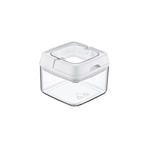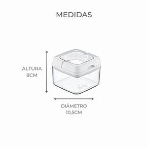 O Pote com tampa hermética e alça para fechamento possui uma ótima vedação devido ao anel desilicone que a circunda.É uma excelente opção para organizar seu armário e bancada, e ainda conservar bem os alimentos.Indicado para armazenar grãos, ervas, cereais, café.Mantém as propriedades dos alimentos.Não contém bpa.Também pode ser utilizado no armazenamento de outros objetos;Fácil de lavar, material resistente e sua transparência facilita identificação do conteúdo.Características:Medidas:Profundidade: 10.5cmLargura: 10.5cmAltura: 8cmEspecificações Técnicas:Matéria-prima: PoliestirenoCor/acabamento: BrancoCapacidade: 500ml