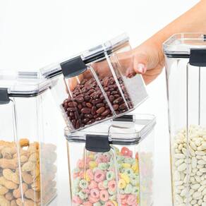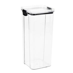 Pote Hermético Quadrado Transparente com Trata 2L Preto Organização com estilo, pote com vedação que isola bem e mantem o sabor, aroma e textura dos alimentos por muito mais tempo, possui vedação com anel de silicone e 2 travas laterais que dão um reforço maior, pode ser usando para armazenar alimentos secos como grãos, temperos, biscoitos como também conservas, molhos etc., possui tampa que permite empilhamento, deixando seu armário mais organizando aproveitando cada espaço.
