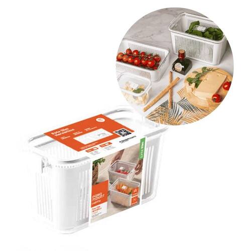 Mantenha seus alimentos frescos por mais tempo com o Pote Hermético Slim de1700ml! Projetado para armazenar frutas, verduras e legumes de forma prática e segura, esse modelo exclusivo conta com um cesto de drenagem integrado, permitindo que a água escorra após a lavagem, garantindo melhor conservação e ventilação dos alimentos.