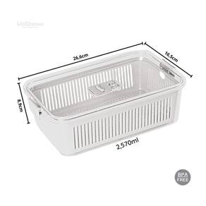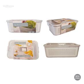 Pote hermético slim multiuso com cesto de drenagem 2.570ml O pote slim é usado para acondicionar alimentos na geladeira, como: frutas, verduras, legumes, hortaliças, saladas e outros. Devido a sua versatilidade, são utilizados para armazenar alimentos em armários e despensas. Alimentos conservados no pote têm maior durabilidade, evitando desperdícios. Possui tampa hermética com travas de segurança nas laterais, válvula de ventilação para a retirada da umidade e cesto de drenagem removível que impede o contato do alimento com a água acumulada no seu interior. São empilháveis com outras peças da linha slim, possibilitando a otimização do espaço na geladeira. Bpa free - produto livre de bisfenol a. Material: poliestireno e polipropilenoFormato: retangularCor: transparente e brancoCapacidade: 2570mlDimensões: (l x c x a) 26,5 x 16,5 x 8,9cmPeso: kgLinha do produto e referência: slim (1771)Marca: paramount plásticosOrigem do produto: nacional Contém na embalagem: 01 pote slim multiuso com cesto de drenagem 2570ml Os demais componentes das fotos são meramente ilustrativos. Garantia contra defeito de fabricação. Limpeza e conservação: Utilize pano macio, esponja macia e detergente neutro. Não utilize materiais abrasivos, saponáceos, substâncias cloradas, lado áspero da esponja e palha de aço. Não utilize em freezers, micro-ondas, lava-louças e fornos elétricos.