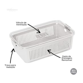 contém na embalagem: 01 pote slim multiuso com cesto de drenagem 2570ml