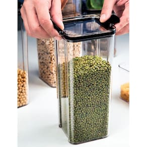 O pote hermetico veio para mudar a forma como você guarda e armazena os seus alimentos e utilidades da casa. São inúmeras as possibilidades de uso e suprindo todas as suas necessidades. Podendo armazenar e organizar coisas como: biscoitos, espaguete, cereais. Além de sua resistência, eles também preservam os itens por muito mais tempo, devido a sua vedação e a sua tampa. O Pote Hermético sé extremamente facil de ser lavado, não deixa risco, não deixa cheiro, tudo que você precisa para facilitar o seu dia a dia.